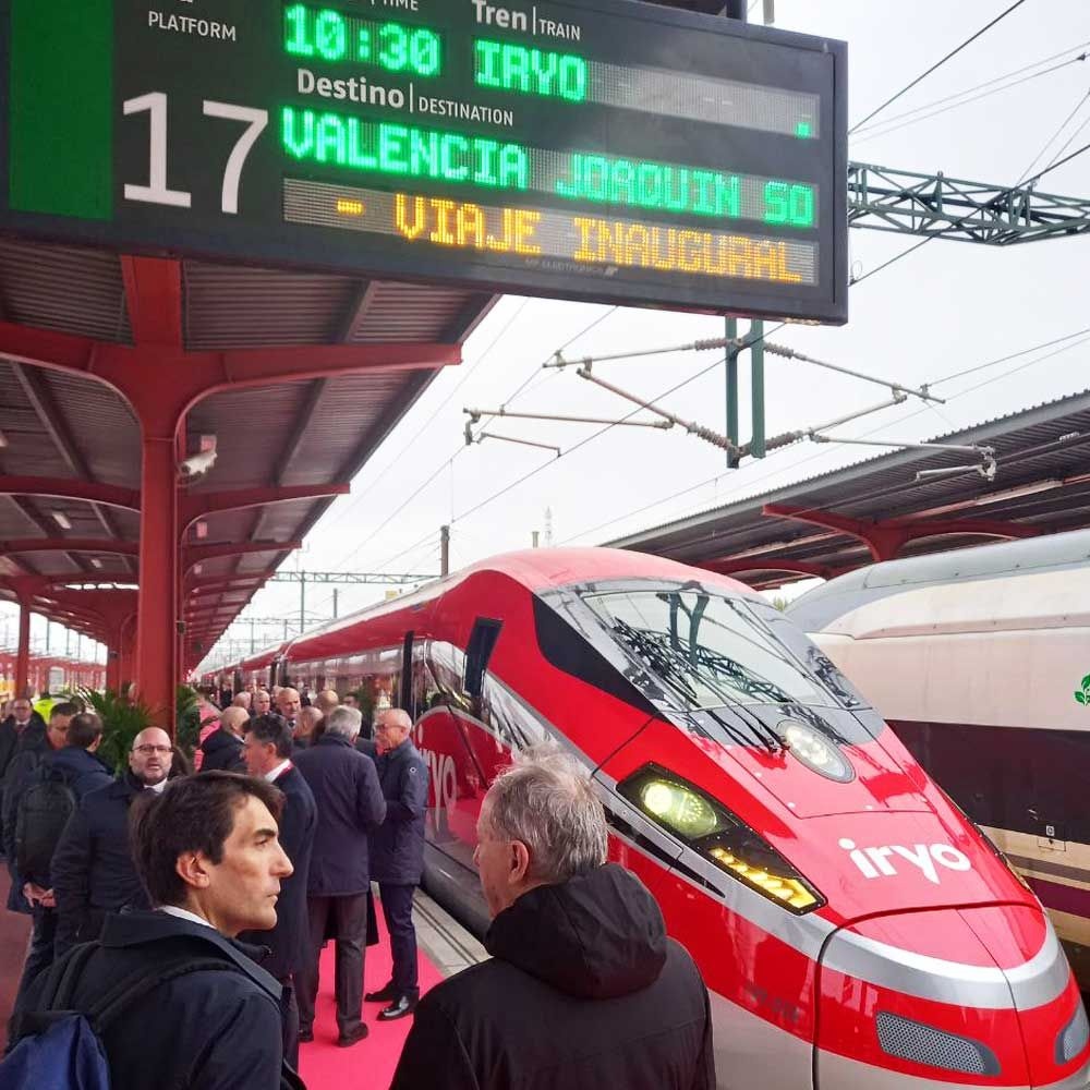 È infatti tutto pronto per il debutto in Spagna, a partire dal 25 novembre, del convoglio rosso eccellenza e simbolo dell'alta velocità di Trenitalia, capofila del Polo Passeggeri del Gruppo FS Italiane: le prime corse iryo (6 coppie di treni al giorno) inizieranno a circolare tra Madrid, Barcellona e Saragozza e poche settimane dopo, dal 16 dicembre, 11 coppie di convogli collegheranno giornalmente Madrid, Valencia e Cuenca. Nel 2023, il 31 marzo, il servizio toccherà le città iberiche di Siviglia, Malaga, Antequera e Cordoba a cui si aggiungeranno, dal 2 giugno, Alicante e Albacete. I biglietti sono già in vendita.