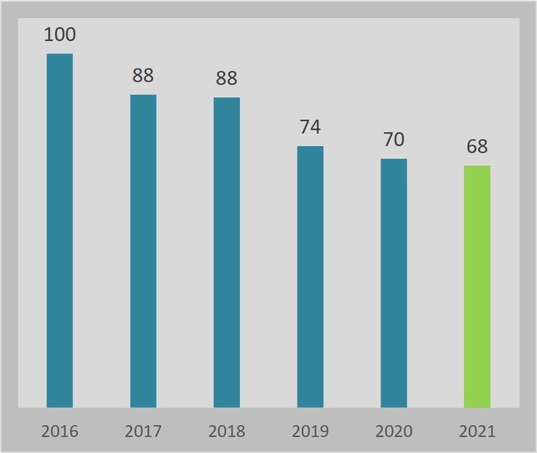 Analizzando i dati si evidenzia purtroppo che il trend, in diminuzione dal 2016, ha invertito la rotta nel corso dell'ultimo biennio, registrando un incremento degli incidenti. Il dato si fa ancora più preoccupante se si tiene conto non solo del fatto che nel corso del 2021 sono entrati a far parte della UIC sei nuovi gestori dell'infrastruttura ferroviaria (OSE - Grecia, LTG - Lituania, NRIC - Bulgaria, EUSKOTREN e FGC - Spagna, INFRAKOS - Kosovo), e che quindi l'indice treni-km è aumentato, ma anche del fatto che nel periodo 2020-2021 il traffico ferroviario ha subito una forte contrazione dovuta alle restrizioni imposte durante la pandemia, e che ad oggi non sia ancora tornato ai livelli antecedenti al 2020.