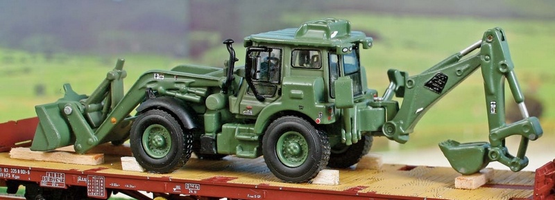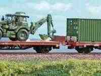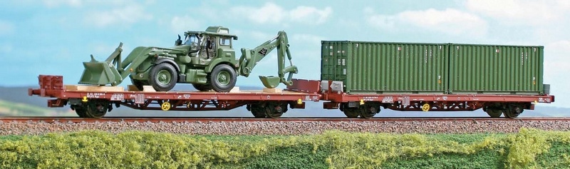 | Descrizione: | Set di due carri Kgps con carico di escavatore e container militari |