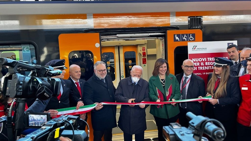 Nuovi treni Pop sui binari della Campania. Si tratta di tre dei 12 convogli di nuovissima generazione destinati alla regione, altra tranche della fornitura di complessivi 37 nuovi treni "Made in Italy" previsti dal Contratto di Servizio. A presentarli, questa mattina (19 dicembre) alla Stazione Centrale di Napoli, il Presidente della Regione Campania, Vincenzo De Luca, il Presidente della Commissione regionale Trasporti, Luca Cascone, il Direttore Business Regionale Trenitalia, Sabrina De Filippis, e il Direttore Regionale Trenitalia Campania, Mario Cuoco.