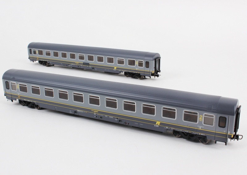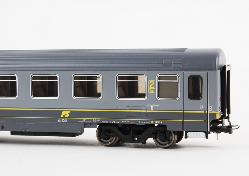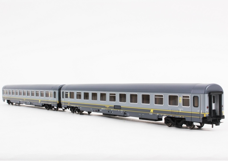 | Descrizione: | Set 2 Carrozze UIC-Z1 II cl. livrea bi-grigio con fasce gialle, logo inclinato |
