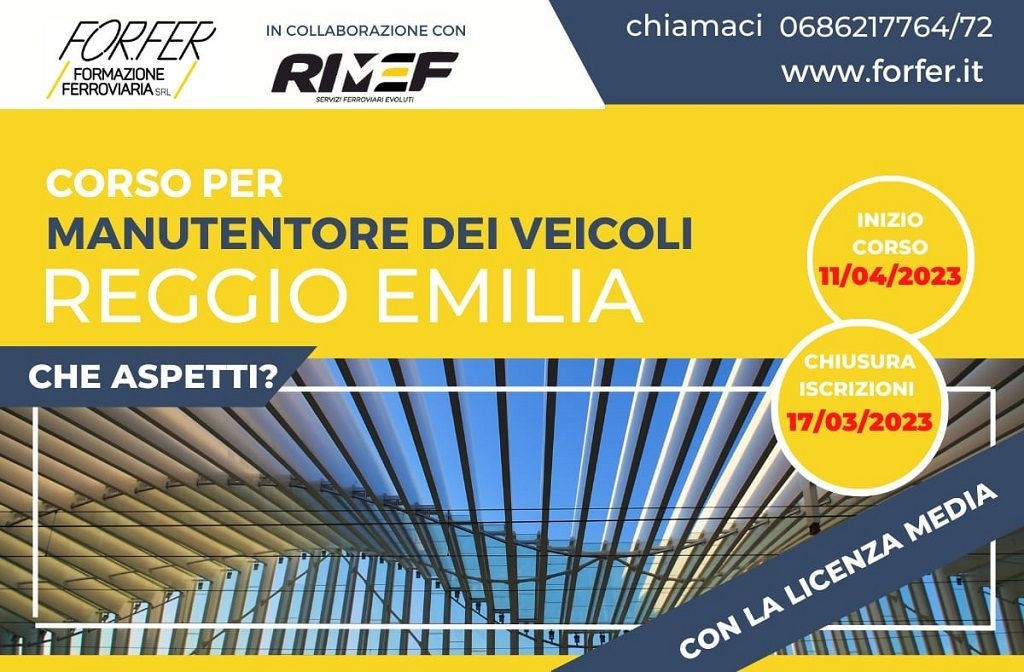 Il centro di formazione ferroviaria For.Fer e Rimef, azienda specializzata revisione e riparazione di mezzi d'opera ferroviari, inaugurano una nuova collaborazione con la realizzazione del primo corso di For.Fer a Reggio Emilia. Il corso formerà i Manutentori dei veicoli e sarà possibile iscriversi fino al 17 marzo 2023.