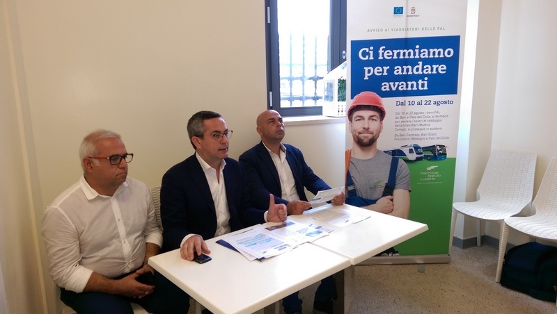 Infine la chiusura della linea ci consente anche di realizzare una manutenzione straordinaria dei binari tra le stazioni di Bari centrale e Bari scalo (per circa 50.000 €). Abbiamo quindi tre importanti cantieri aperti. Sappiamo di causare un disagio ai nostri utenti, ma noi stiamo facendo lo sforzo enorme di lavorare nel periodo estivo, notte e giorno, per fare più presto possibile e per continuare nel nostro percorso di potenziamento e messa in sicurezza delle linee e di miglioramento della qualità dei nostri servizi, con l'obiettivo finale, in vista del 2019, di avvicinare ancora di più Matera al resto d'Italia e d'Europa".