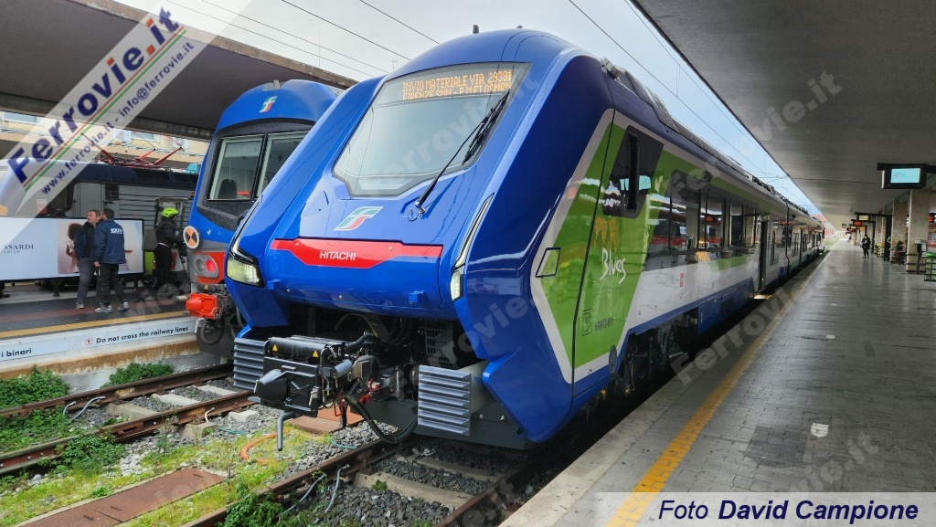 Il Blues, primo treno ibrido di Trenitalia (Gruppo FS Italiane) a tripla alimentazione, elettrica, Diesel e batteria è entrato in servizio commerciale oggi (9 marzo) nel Mugello, alle 14.10 in partenza da Firenze Campo di Marte per Borgo S. Lorenzo.