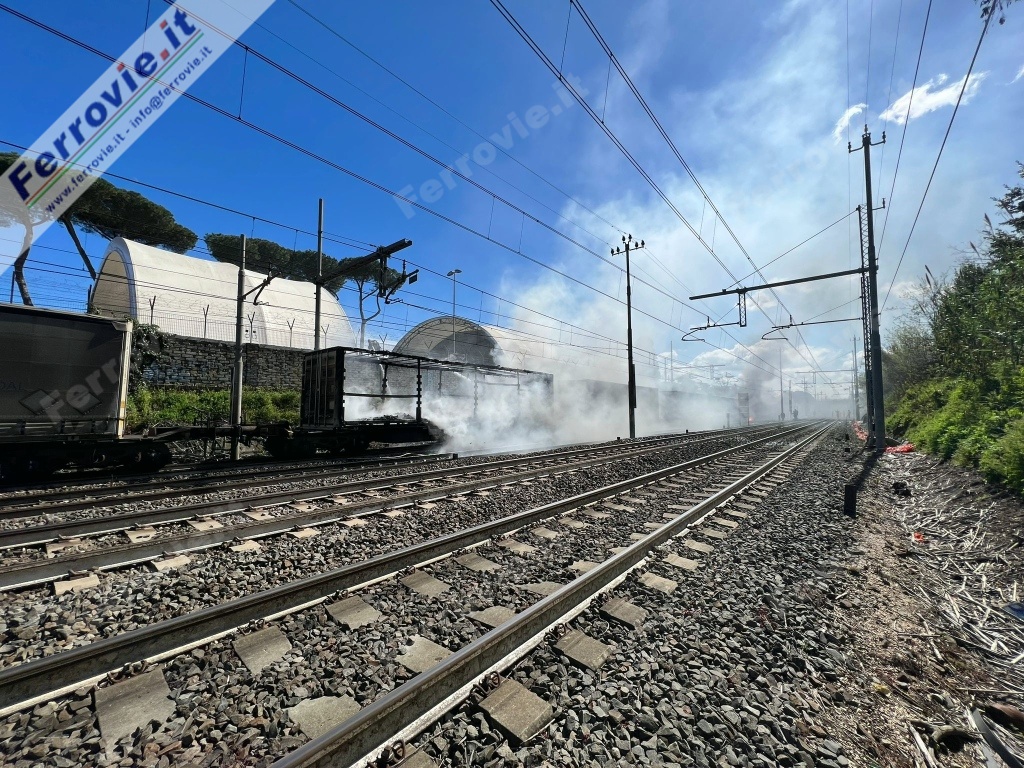 ROMA - Circolazione ferroviaria sospesa nel nodo di Roma per un incidente nella stazione Casilina. Alle 11.30 di questa mattina (27 marzo) il locomotore di un treno merci impegnato nella traversata del piazzale di Roma Casilina avrebbe strappato la linea aerea, provocando l'incendio del carico di pellet in container caricati su due carri in composizione al convoglio.