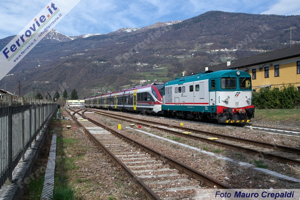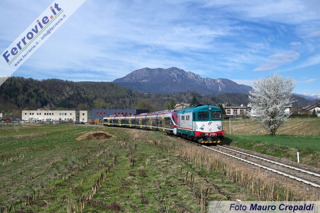 TRENTO - In previsione dell'elettrificazione della tratta Trento - Borgo Valsugana Est, domenica 26 marzo è stata effettuata una corsa prova tra le due stazioni con l'ETR.526-013 di Trenitalia. Il Jazz ha viaggiato al traino della D.345.1053 (del DL Bolzano) per verificare la compatibilità delle pedane delle porte con i marciapiedi alti delle stazioni.