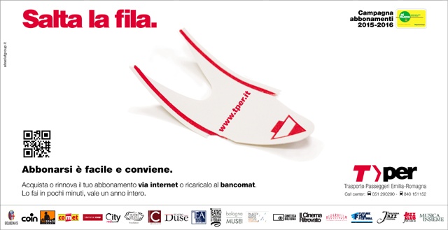 Ai fedelissimi abbonati, aumentati percentualmente dell'11,5% in soli tre anni, e a tutti coloro che per la prima volta vorranno far parte di questo virtuoso gruppo sempre più vasto è dedicato il claim che Tper, con l'approssimarsi della ripresa delle attività lavorative e scolastiche, ha lanciato per la propria campagna abbonamenti: "Salta la fila".