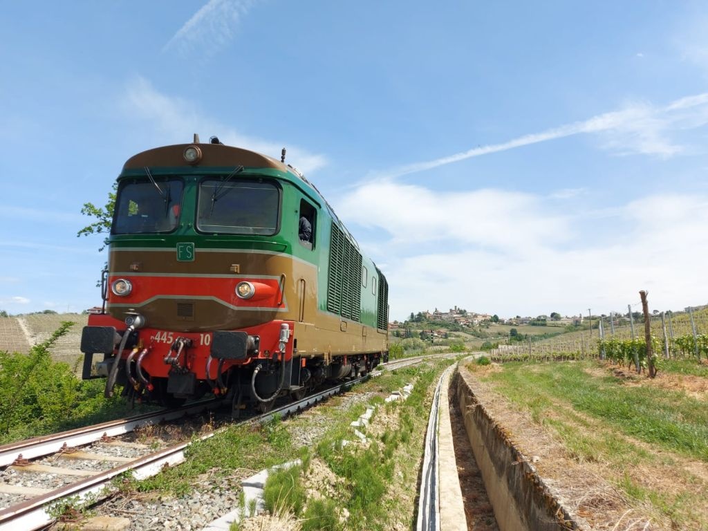 In vista dei prossimi appuntamenti in treno storico in Piemonte, è stata effettuata oggi (28 aprile) una corsa prova con la locomotiva D.445.1001 sui binari della Ferrovia delle Langhe-Roero e Monferrato, tra Asti, Nizza Monferrato e Alba.