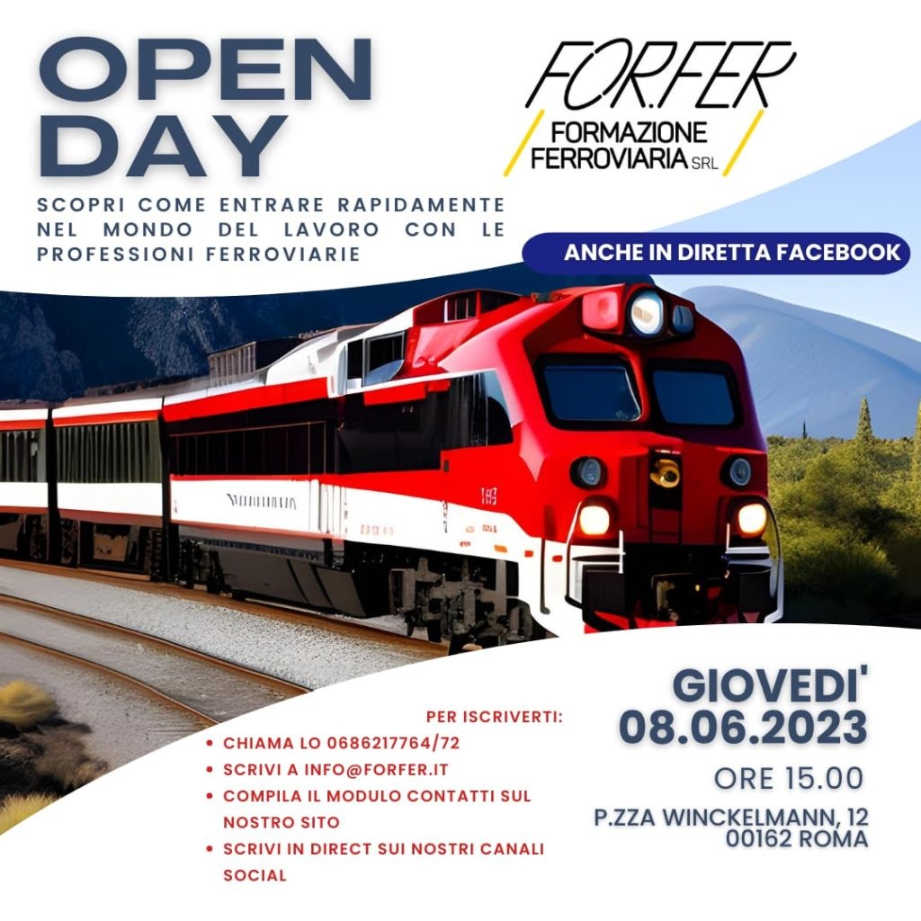 L'8 giugno 2023 For.Fer, centro di formazione per le professioni ferroviarie, apre le porte della sua sede romana in P.zza G. Winckelmann 12, per presentare le opportunità del mondo del trasporto su ferro e i suoi corsi che intendono rispondere alla rapida crescita della domanda di nuovo personale da parte delle imprese ferroviarie.