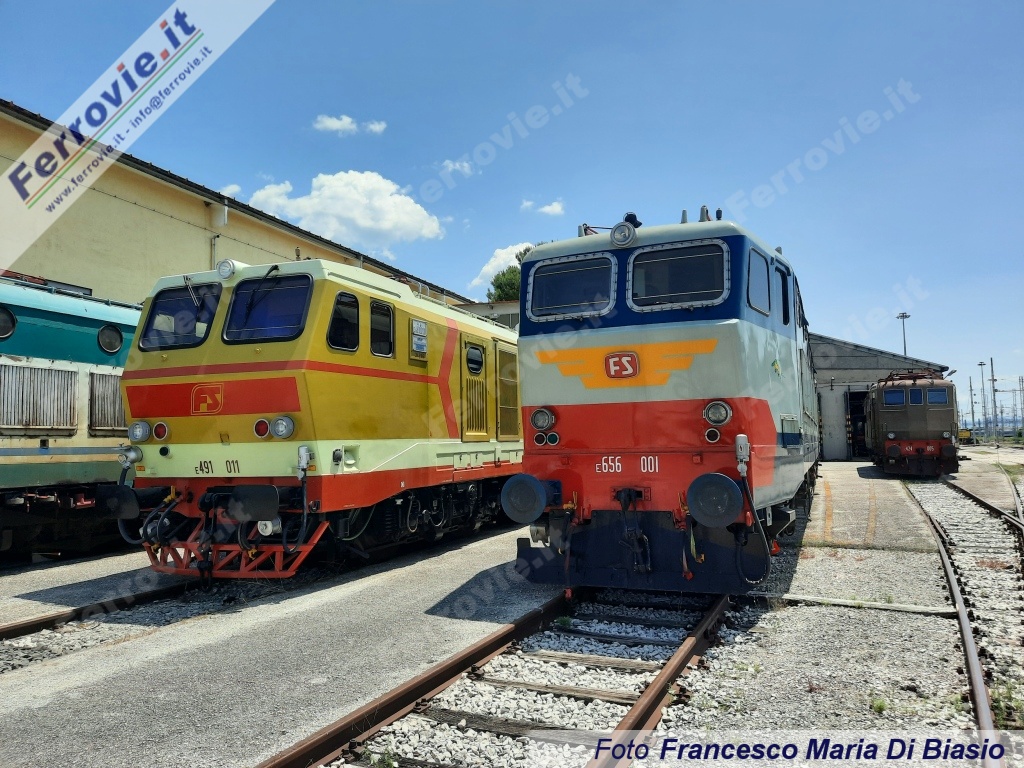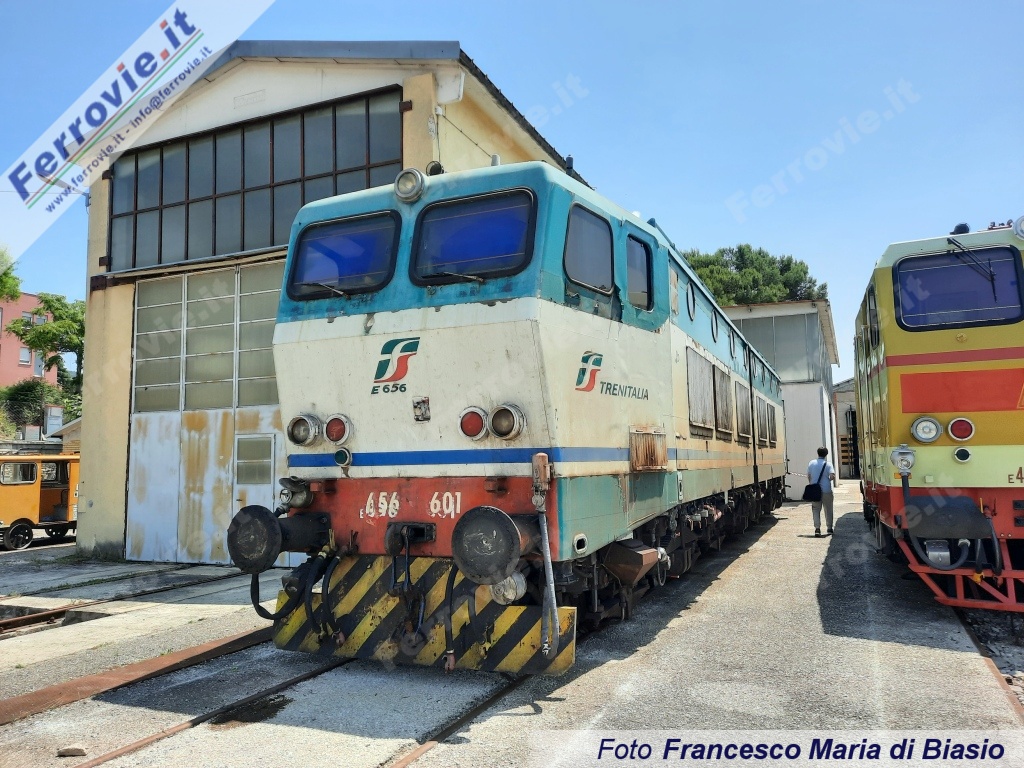 Non mancavano sul piazzale alcune E.656, in particolare la 001, in livrea grigio perla-blu orientale, e ancora la 601, unità appartenente alla sesta serie (attrezzata per treni reversibili), in livrea XMPR e in attesa di un probabile restauro.