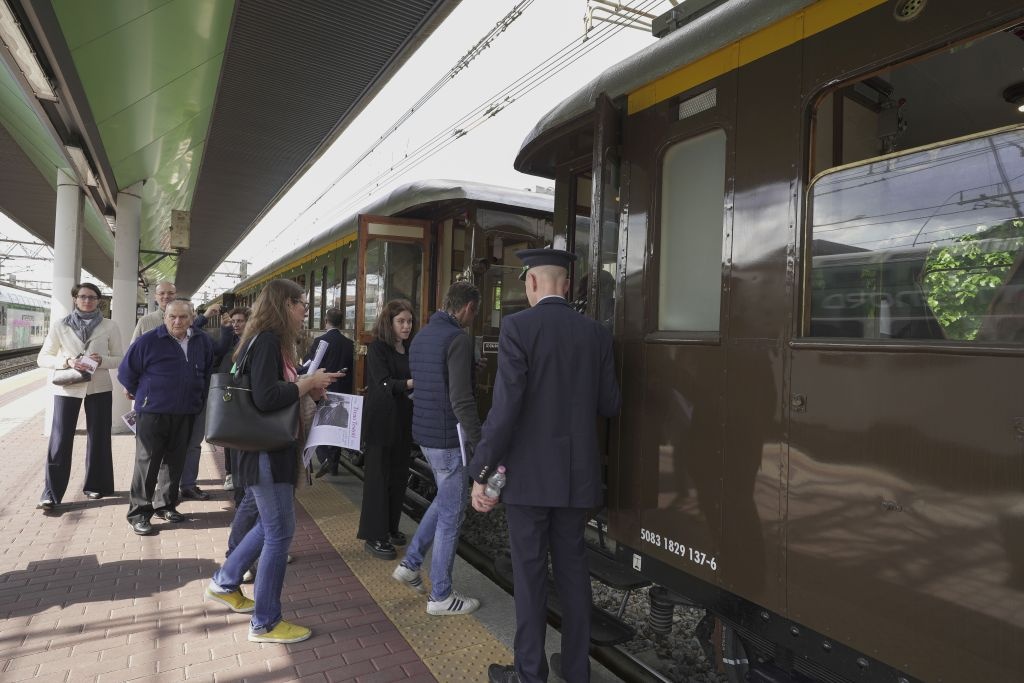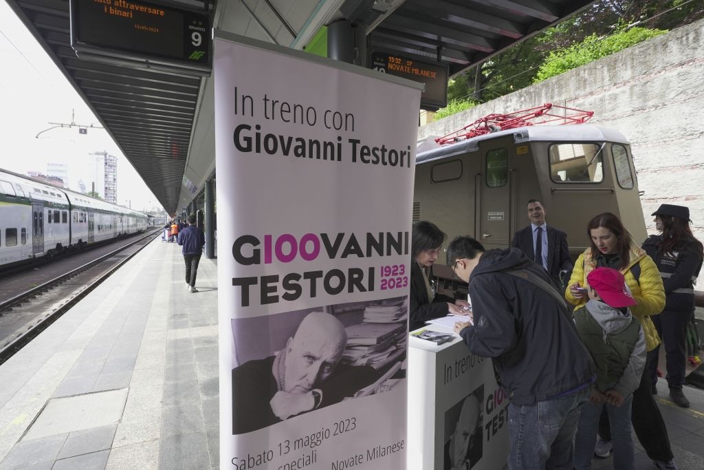 Quasi 500 passeggeri hanno viaggiato sul convoglio storico restaurato - composto da tre carrozze AZ degli anni 1924/25, dal locomotore E.600-03, risalente al 1928, e dal locomotore E.610-04, risalente al 1949 - che per l'occasione Trenord ha riportato sui binari per quattro corse fra Novate Milanese e Milano Cadorna, tratta che ogni giorno Testori percorreva in treno.