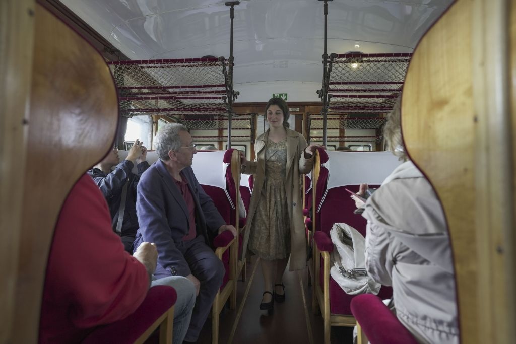 A bordo, i viaggiatori hanno assistito alla rappresentazione di scene dal "Fabbricone", romanzo testoriano ambientato in un palazzo simile a quelli che si affacciano sulla ferrovia, nella zona della Bovisa.