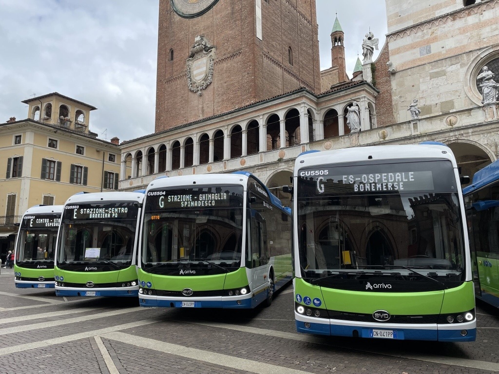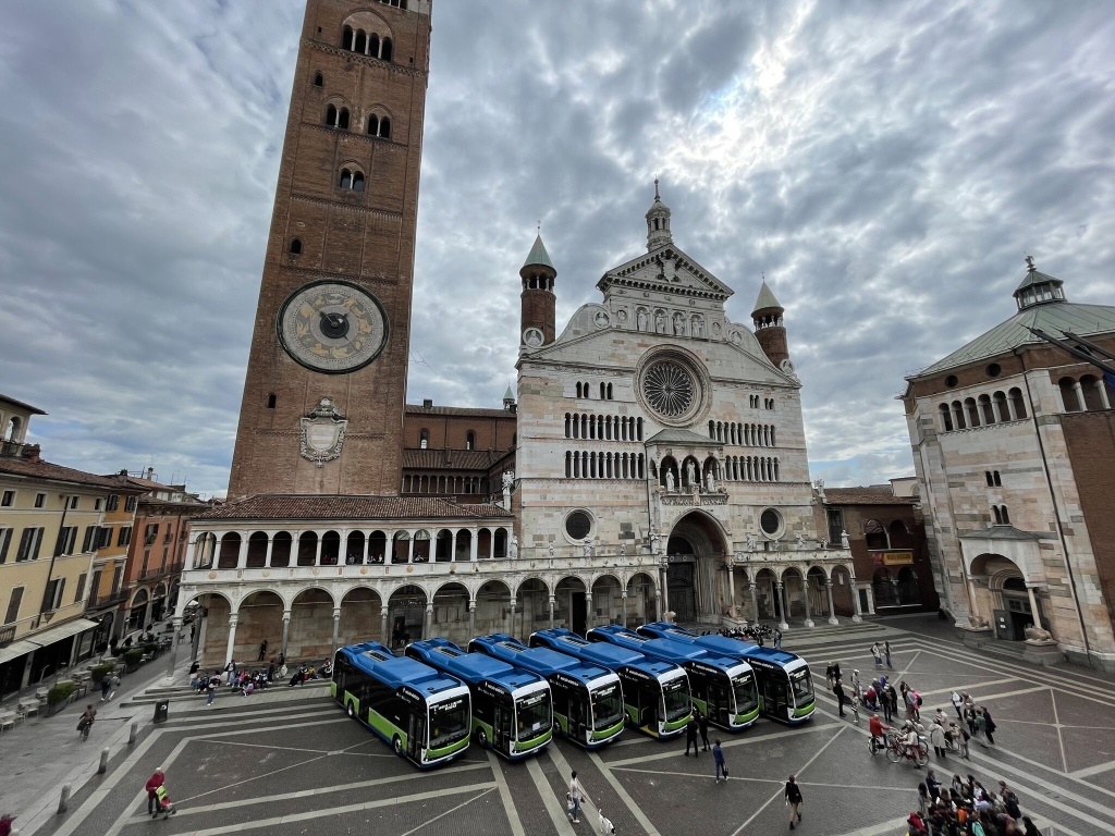Sono stati presentati oggi, lunedì 15 maggio, i nuovi autobus elettrici di Arriva Italia, schierati in piazza del Comune. Alla presentazione hanno partecipato Angelo Costa, Amministratore Delegato di Arriva Italia, Gianluca Galimberti, Sindaco di Cremona, Simona Pasquali, Assessore alla Mobilità Sostenibile, all'Ambiente e alla Protezione Civile.