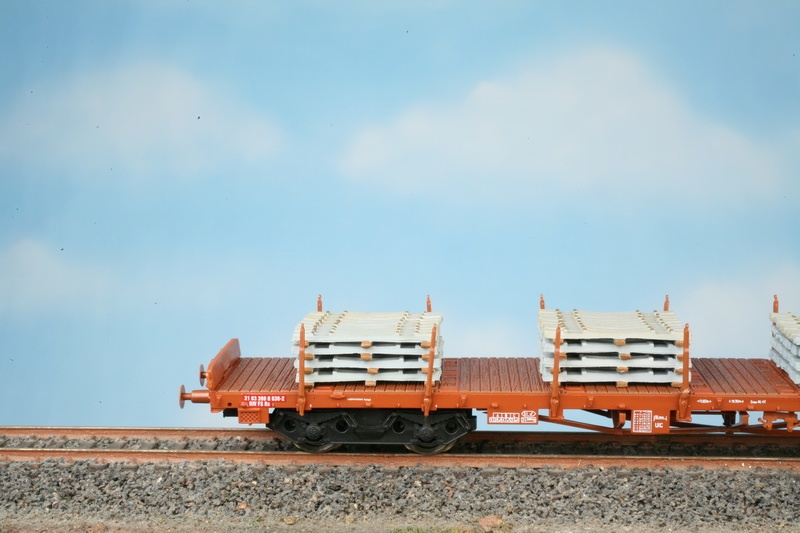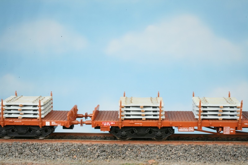 | Descrizione: | Set due carri Rs con carico di traversine in cemento |