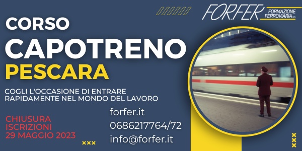 C'è tempo fino al 29 maggio 2023 per iscriversi al primo corso in Abruzzo per Addetti all'accompagnamento treno (Capitreno). Il corso si svolgerà a Pescara a partire da giugno e fa parte della ricca offerta formativa del centro di formazione per le professioni ferroviarie For.Fer.