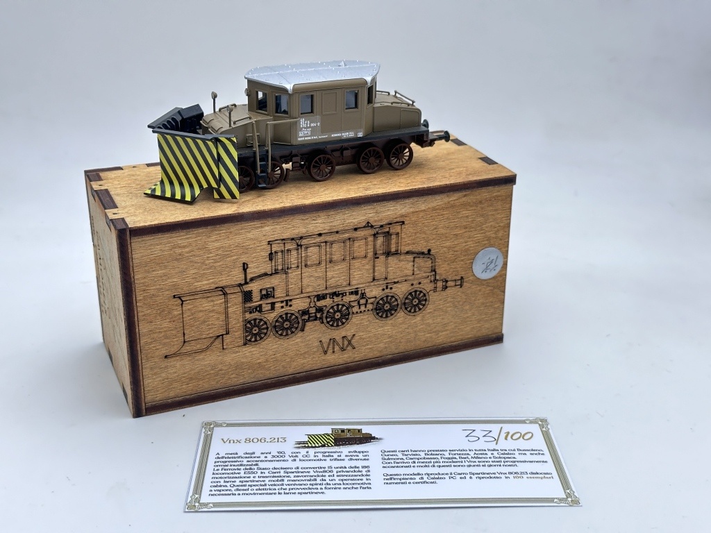 Il modello è realizzato in stampa 3D con numerosi aggiuntivi da montare; le ruote sono folli e possono girare ma come al vero non è motorizzato, quindi può circolare spinto da una locomotiva per sgomberare la neve o trainato.