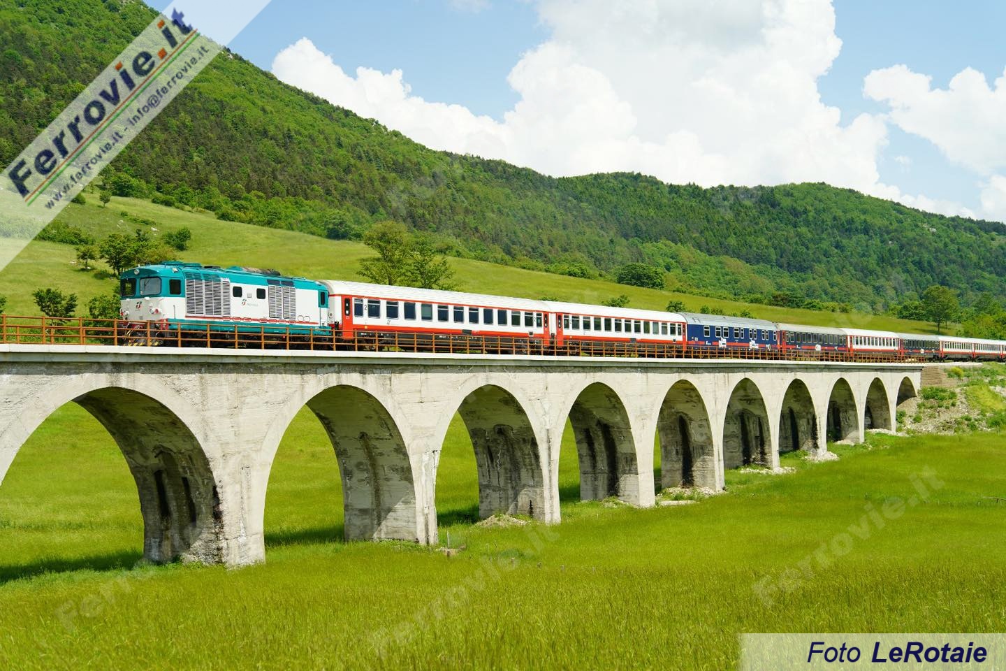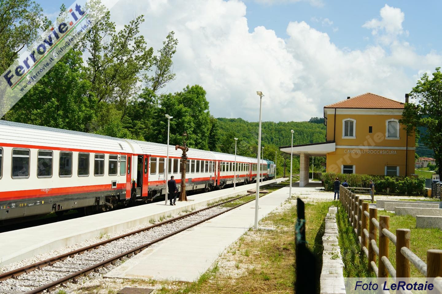 Oggi a Carovilli un treno inconsueto, 10 vetture IC e ICN di Trenitalia con doppia trazione simmetrica di D.445 per testare la linea in vista dei tour del Treno della Dolce Vita previsti a partire dal 2024 (vedi News ferroviarie del 15/06/2021 e News ferroviarie del 19/11/2022).