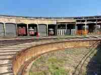 Dei 32 binari confluenti nella piattaforma girevole, 2 attraversano a raso la Rimessa; gli altri 30 erano destinati al ricovero dei mezzi. Alcuni di questi sono attrezzati con fosse da visita di oltre 20 metri di lunghezza per uno di profondità, e constano della presenza, alle estremità lato interno rotonda, sotto le scalette metalliche per l'accesso, di collettori con ghisa delle acque piovane e di spurgo. Tre delle fosse sono inoltre attrezzate con cala assi a martinetti idraulici comandati da una pompa collegata a un motore elettrico.