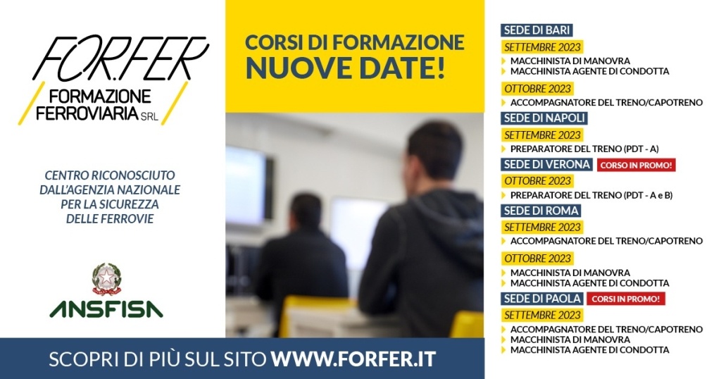 Non è mai troppo presto per decidere del proprio futuro, e per aiutare chi desidera entrare rapidamente nel mondo del trasporto su ferro For.Fer propone anche per l'autunno 2023 un calendario ricco di corsi e novità.