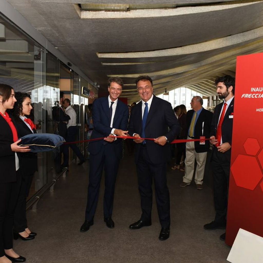 A presentare il nuovo FRECCIALounge, che si trova al piano superiore della biglietteria, l'AD di Trenitalia, Luigi Corradi.