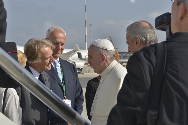 A salutare il Santo Padre sottobordo, il presidente di Alitalia, Luca Cordero di Montezemolo.