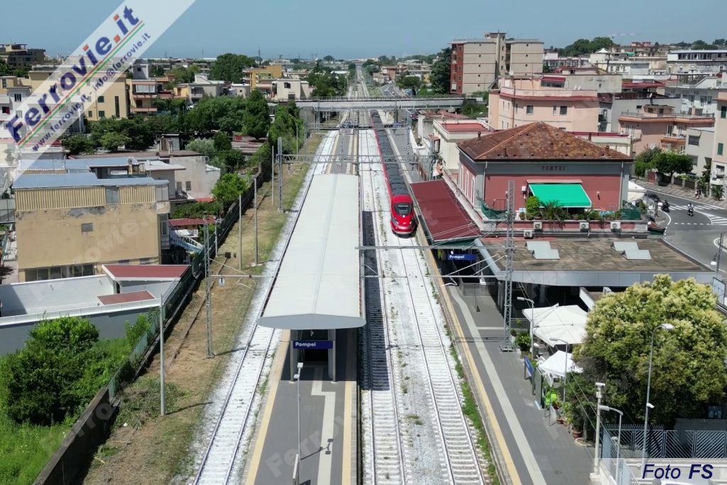 Tornando sui binari della Napoli-Salerno, poco dopo Torre Annunziata il "nostro" Frecciarossa raggiunge la stazione di Pompei che è l'attuale destinazione finale del treno e dove i passeggeri (o meglio i turisti) diretti agli scavi possono usufruire di un trasferimento con un FrecciaLink.