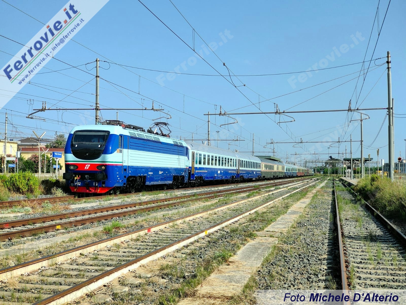 ROMA - Nel pomeriggio di mercoledì 19 luglio si è svolta una corsa prova che ha visto protagonista il materiale rotabile di Fondazione FS Italiane e di Treni Turistici Italiani. Il convoglio ha viaggiato da Roma Termini a Villa Literno e ritorno via Formia, con le due E.402.116 e 172 in livrea TTI e in doppia trazione simmetrica (vedi News ferroviarie del 18/07/2023) con intercalate ben dodici carrozze tra cui le tre UIC-X e la MDVC di TTI (vedi News ferroviarie del 15/07/2023), tre Gran Confort, due TEE, la carrozza "Pizza Express", una UIC-X di prima classe in grigio ardesia e ancora la carrozza "Press & Conference".