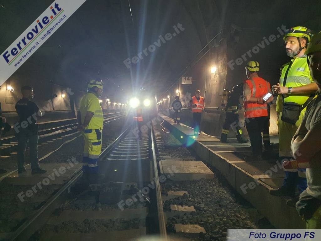 Questo lo scenario dell'esercitazione ferroviaria di Protezione Civile che si è svolta nella notte tra sabato 22 e domenica 23 luglio nella galleria Vaglia, sulla linea Alta Velocità Firenze - Bologna.