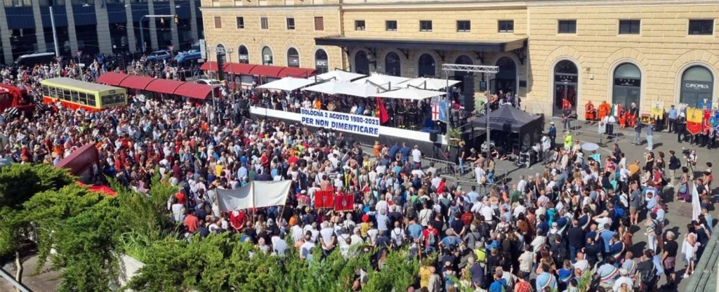 La giornata di ricordo dell'eccidio è iniziata la mattina presto in comune dove il sindaco Matteo Lepore, il presidente della Regione, Stefano Bonaccini, e il ministro dell'Interno (già prefetto di Bologna), Matteo Piantedosi, hanno incontrato i familiari delle vittime. Da piazza Maggiore poi è partito il corteo diretto alla stazione centrale, un percorso tracciato dai sampietrini della memoria, su cui sono incisi i nomi e le età delle 85 persone uccise il 2 agosto 1980. A piazza delle Medaglie d'oro gli interventi del presidente dell'Associazione dei familiari delle vittime, Paolo Bolognesi, e del sindaco Lepore. Interventi che si sono interrotti alle 10.25, orario dello scoppio della bomba, per un minuto di raccoglimento preceduto da un triplice fischio di un treno.