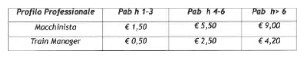 PAB: L'indennità di permanenza a bordo verrà pagata sempre dalla prima ora e avrà un valore unitario incrementale in base alle ore di PAB effettuate, secondo lo schema di seguito riportato: