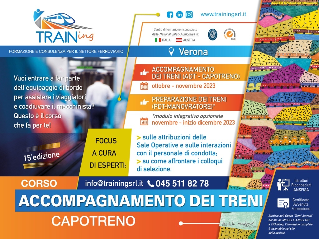 Sono aperte le iscrizioni per il prossimo corso Accompagnamento dei Treni - Capotreno del Centro di Formazione TRAINing Srl.