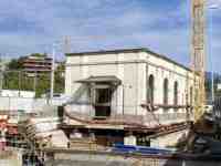 Sono bastate poche ore per spostare nuovamente l'edificio di servizio - circa 600 tonnellate, per 25 metri di larghezza, 10 metri di lunghezza e 9 metri di altezza - verso la sua posizione definitiva alla stazione di Lugano. Trattandosi di un edificio ultracentenario con una certa importanza storica e architettonica, le autorità federali ne avevano richiesto la conservazione. Quindi, come un anno fa - era il 17 agosto 2022 quando il primo atto andò in scena - l'edificio, che un tempo ospitava gli uffici delle poste (prima) e delle dogane (poi), è stato spostato di una trentina di metri, facendolo scivolare su binari di cemento appositamente realizzati verso sud. Un lavoro particolare, svolto da un'azienda specializzata nello spostamento degli edifici. La stessa azienda che un anno fa lo spostò di 40 metri verso nord (vedi Brevi ferroviarie del 18/08/2022), così da garantire la sicurezza del cantiere, nonché la stabilità dell'edificio durante i lavori di scavo del nuovo sottopasso pedonale di Besso. Ora con le opere di scavo ultimate, l'edificio è stato riportato indietro, restando però qualche metro più a nord rispetto alla sua posizione originale.