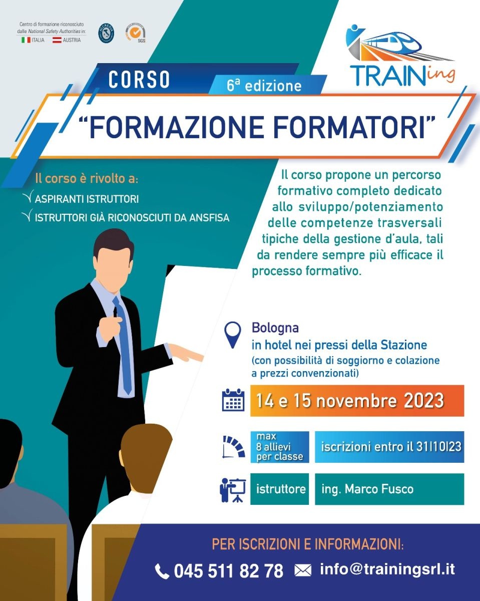Per prenotarsi o per avere ulteriori informazioni contattare la Segreteria Tecnica al numero telefonico 045 511 82 78 oppure tramite e-mail all'indirizzo info@trainingsrl.it