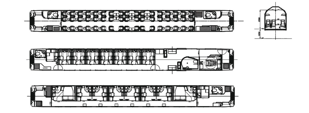Il progetto prevede un convertitore statico per l'alimentazione degli ausiliari adatto alle reti europee, con carica batterie integrato, ampi intercomunicanti a tenuta tipo Hübner e accoppiatori conformi alle norme EN15566 e EN15551, illuminazione a LED, moderni sistemi di informazione e intrattenimento audio e video per i passeggeri. Batterie al litio da 800 Volt garantiranno il funzionamento dei servizi ausiliari delle carrozze per 45 minuti in assenza di alimentazione esterna.