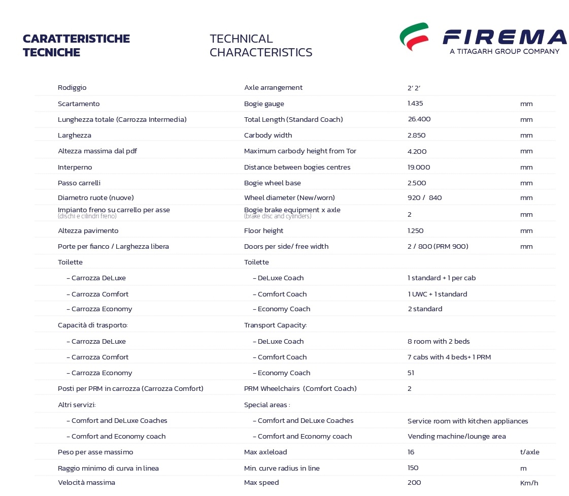 Basate sulla nuova piattaforma Vinci per treni Intercity giorno e notte, le carrozze saranno costruite nello stabilimento di Caserta in Raggruppamento Temporaneo di Imprese tra Titagarh Firema e Škoda Transportation. Un nuovo modello di carrozza personalizzabile secondo le esigenze del cliente con allestimenti che in fase progettuale possono variare in base alle preferenze del committente.