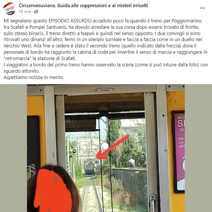 In riferimento alla notizia diffusa dalla pagina Facebook "Circumvesuviana. Guida alle soppressioni e ai misteri irrisolti", l'EAV informa che la notizia è completamente falsa.