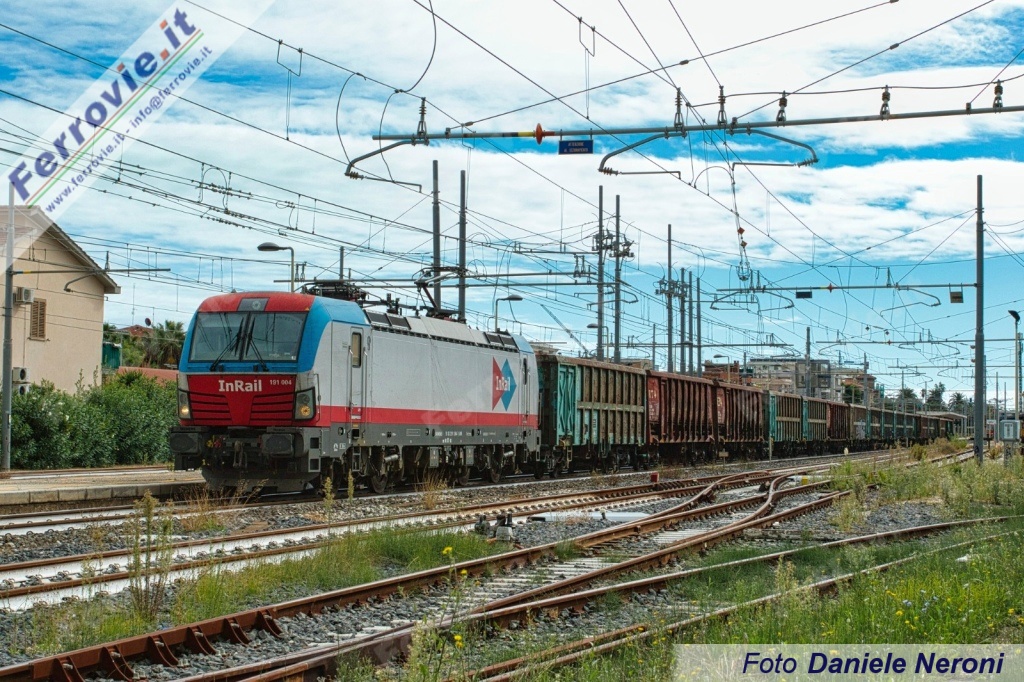 TARANTO - Per la prima volta nella sua storia InRail si spinge fino in Puglia. Nella notte tra sabato 14 e domenica 15 ottobre l'operatore friulano ha effettuato un servizio merci da San Stino di Livenza a Taranto Bellavista, con 18 carri scoperti carichi di rottami trainati dalla E 191.004.