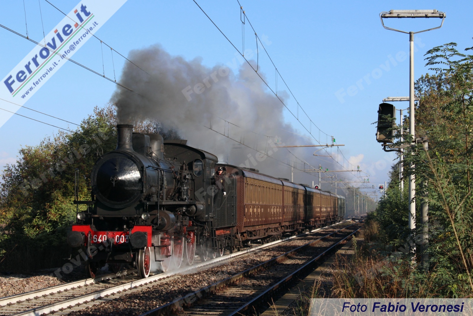 LEGNAGO (Verona) - L'Associazione Veneta Treni Storici torna ad organizzare viaggi in treno a vapore in collaborazione con Fondazione FS Italiane. Domenica 22 ottobre la protagonista è stata la 640.003 con cinque carrozze Centoporte e un bagagliaio a carrelli per il trasporto di bici, che hanno viaggiato tra Verona Porta Nuova e Legnago via Mantova.