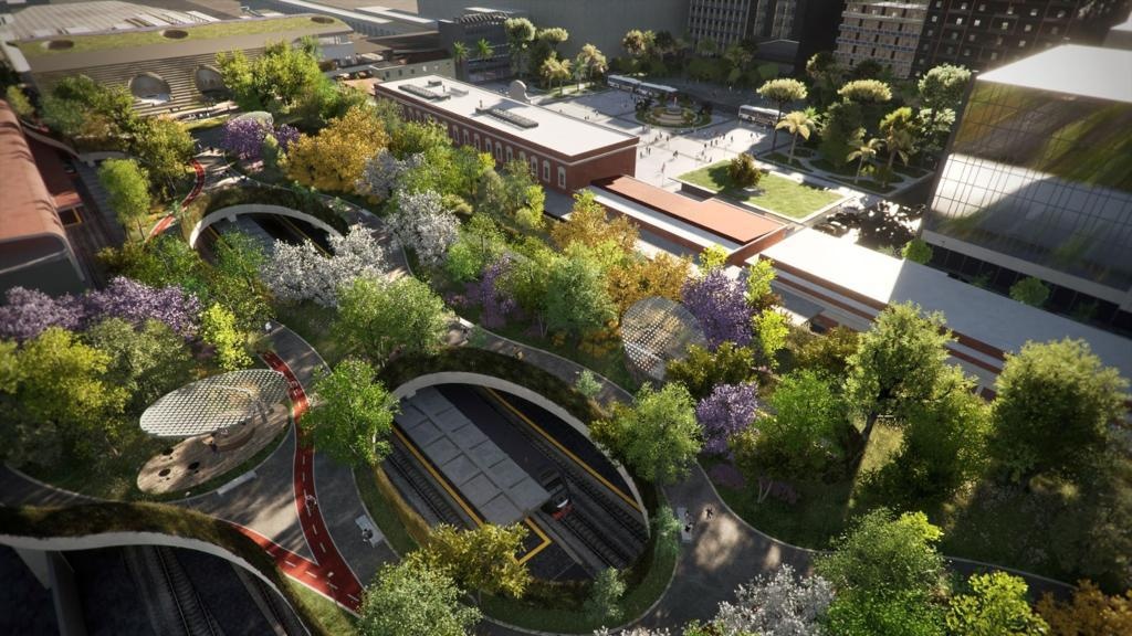 Una piastra verde riconnetterà i quartieri oggi separati dal fascio binari, attraverso la realizzazione di un parco urbano con servizi fruibili dalla comunità e nuovi percorsi ciclabili e pedonali. Il progetto prevede anche la pedonalizzazione parziale di Piazza Aldo Moro, l'ampliamento delle superfici pedonali e creazione di piste ciclopedonali su Via Capruzzi.