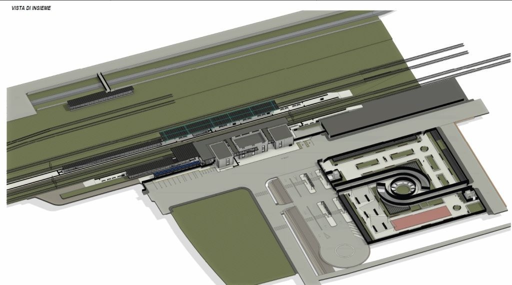 Il progetto prevede il potenziamento dei servizi di scambio intermodale attraverso la riqualificazione del piazzale antistante con la realizzazione di una stazione per bus, parcheggi per auto private, stalli per la ricarica delle auto elettriche e stalli per bici. Previsto anche il potenziamento dell'illuminazione, della segnaletica e della videosorveglianza, in un'ottica di rafforzamento della sicurezza dell'area. L'accessibilità sarà garantita attraverso l'adeguamento dei marciapiedi, la realizzazione di una stazione ciclo-pedonale con percorsi per ipovedenti. Previsto anche il rifacimento del sottopasso esistente con il prolungamento dello stesso e la realizzazione di rampe volte all'abbattimento delle barriere architettoniche. L'area esterna sarà adibita a parco urbano, attrezzata con panchine, aiuole, alberature, un parco giochi per bambini e tensostrutture per garantire l'ombreggiamento e la protezione dagli agenti atmosferici.