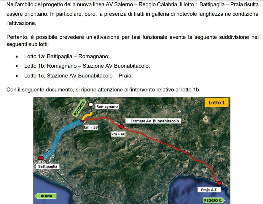 La pubblicazione, sul sito del Ministero delle Infrastrutture e dei Trasporti, del Progetto di Fattibilità Tecnico-Economica (PFTE) del lotto Romagnano - Buonabitacolo (Fermata Intermedia AV) della linea Alta Velocità Salerno - Reggio Calabria evidenzia il fatto che RFI, nella stesura del progetto, NON ha rispettato quanto prescrive il Regolamento UE 1315/2013, il cui rispetto, in questo caso, coincide anche con gli interessi dei 156.000 abitanti in 58 Comuni della Basilicata meridionale, Vallo di Diano e Alburni, ovvero il bacino di utenza della linea Sicignano - Lagonegro.