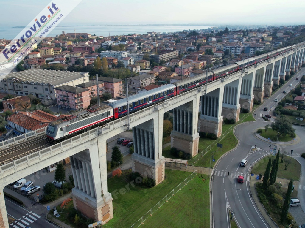 MILANO - Instradamento eccezionale e difficilmente ripetibile per due coppie di Intercity Notte Milano - Sicilia nella seconda decade di novembre. A causa di lavori sulla rete ferroviaria nazionale tra Salerno e Battipaglia e più a nord tra Reggio Emilia e Parma, nelle notti 18-19 e 19-20 novembre i treni 1962/1964 Siracusa/Palermo - Milano e i corrispondenti 1963 (riclassificato per l'occasione 36043)/1965 sono stati protagonisti di un instradamento alternativo del tutto inusuale, che li ha visti toccare ben 10 regioni italiane lambendo il mar Jonio per poi passare al Tirreno, di nuovo allo Jonio e ancora al mare Adriatico, per sfiorare in ultimo le acque dolci del lago di Garda.