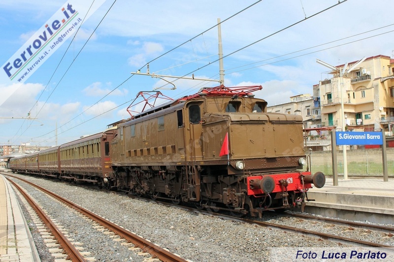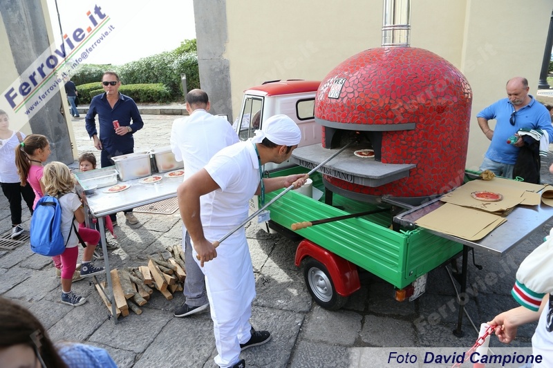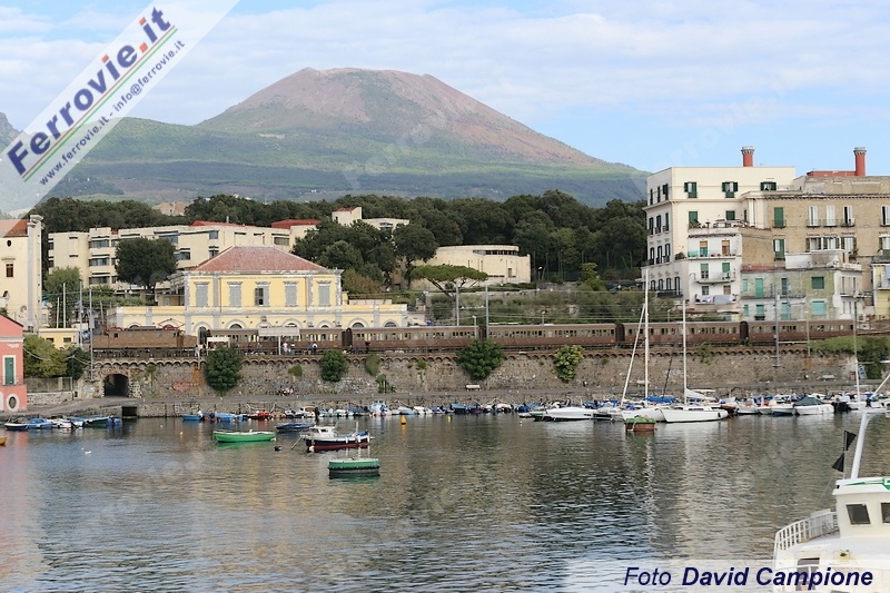Il mezzogiorno a Pietrarsa è stato invece scandito dai fischi della E.626.428, partita da Napoli alle 11.35 con le 5 carrozze Centoporte castano - isabella ed accolta nella stazione del Museo da una folla festante che si è unita ai tanti passeggeri in arrivo sul treno storico, lo stesso che nei giorni scorsi ha effettuato la spola tra Napoli e Pietrarsa per gli stati generali del turismo sostenibile (vedi Treni storici del 02/10/2015). Dopo la discesa dei viaggiatori, il treno ha proseguito sul binario illegale fino Portici e quindi verso Torre Annunziata dove ha sostato fino alle 15.30 quando è riparto verso Napoli, fermando a Portici e Pietrasa.