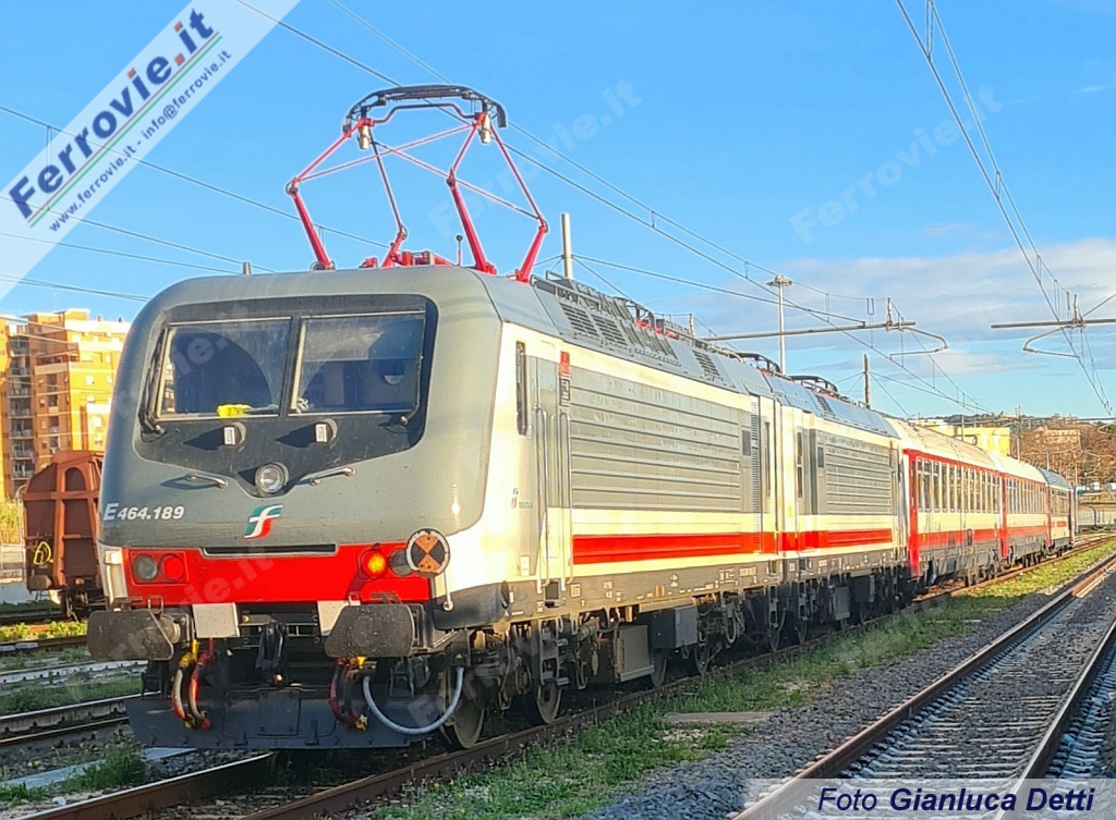 ROMA - Potrebbe essere immininente l'avvio delle manovre d'imbarco sui traghetti in autonomia per le E.464 dotate di batterie. Nella giornata di giovedì 22 novembre sono state effettuate una serie di corse prova che hanno visto protagoniste E.464.189 e 236, due carrozze UIC-Z1 e ancora una pilota tipo Z1A.