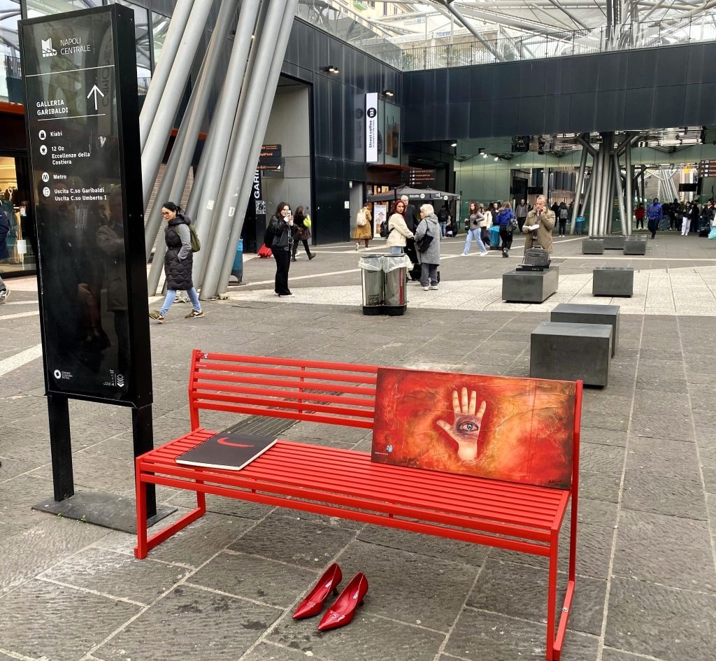 Una panchina rossa in ricordo delle vittime di violenza e femminicidi. L'iniziativa è del Comitato Pari Opportunità Campania-Molise del Gruppo FS Italiane che, con il sostegno del CPO Nazionale, ha provveduto a installare questa mattina (27 novembre) una panchina colorata di rosso nella stazione di Napoli Piazza Garibaldi.