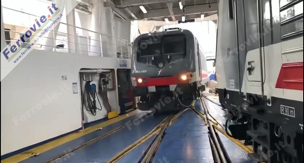 VILLA SAN GIOVANNI (Reggio Calabria) - Dal 10 dicembre via all'imbarco e sbarco autonomo delle E.464 sulle navi traghetto. Dopo la prova dell'Intercity 723 Roma - Siracusa del 1° dicembre che ha raggiunto autonomamente il ponte binari della nave di RFI, è stato ufficializzato l'avvio regolare delle manovre "a batteria" dei treni Intercity diurni che collegano la Capitale alla Sicilia.