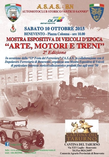 L'ASAS - Automotoclub Storico Antico Sannio, in collaborazione con il Dopolavoro Ferroviario di Benevento, in occasione della "XII Festa del Ferroviere" ha organizzato la seconda edizione della mostra espositiva di veicoli di particolare interesse storico/collezionistico prodotti fino agli anni '50, denominata "Arte Motori e Treni".