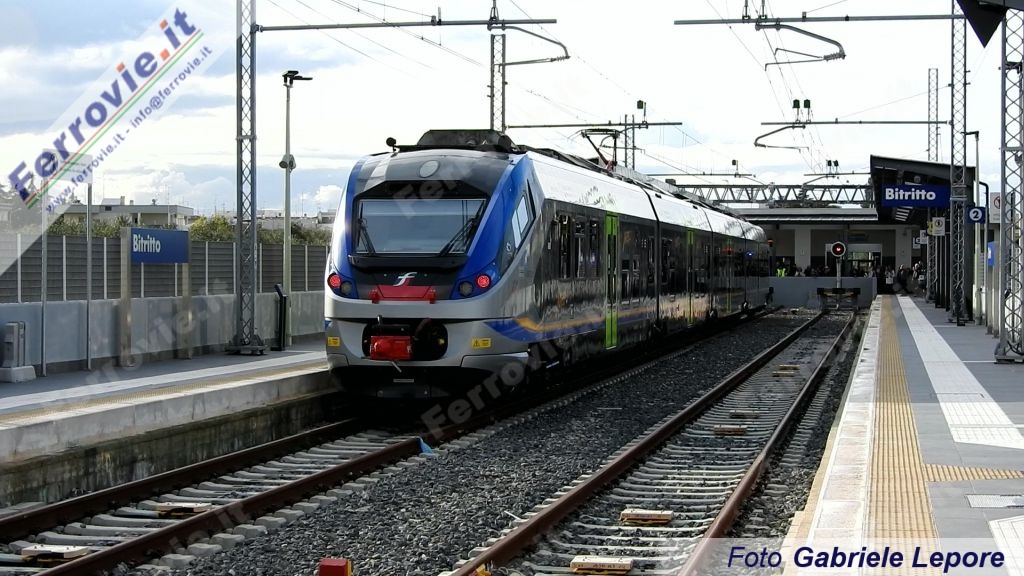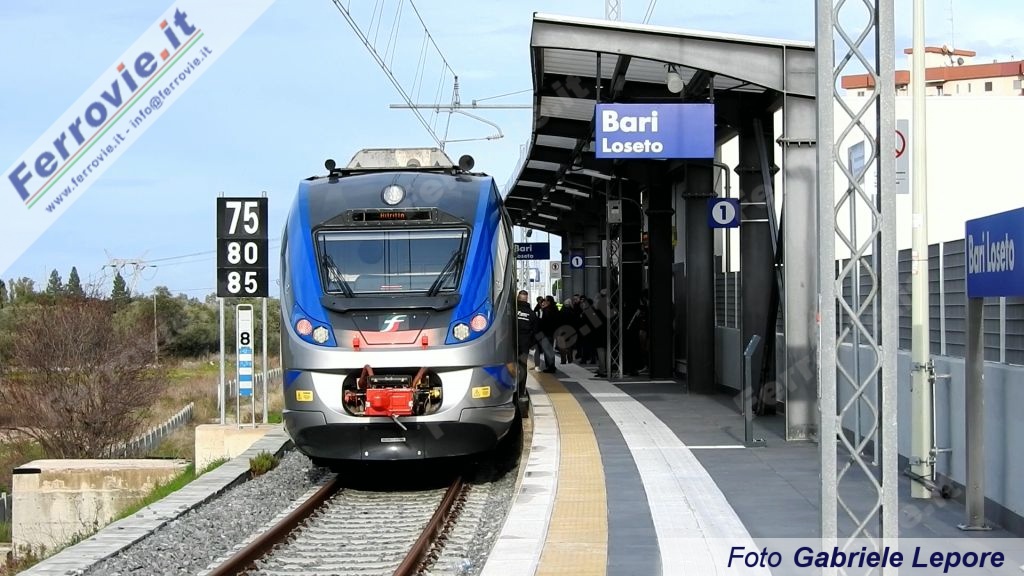 BARI - Giornata storica per il trasporto pubblico pugliese. Ha debuttato nel pomeriggio di oggi, lunedì 8 gennaio 2024, il servizio ferroviario sulla linea Bari - Bitritto, la grande incompiuta attesa da decenni che ha visto il suo completamento nell'anno appena trascorso (vedi News ferroviarie del 03/01/2024). L'onore di espletare la prima corsa è toccato all'ETR.324-012, con il Regionale 19959 delle ore 14:07 da Bari Centrale per Bitritto. Il treno ha ricevuto una festosa accoglienza da parte di alcuni gruppi di cittadini nelle stazioni di Bari Santa Rita e Bitritto, così come nella fermata di Bari Loseto, mentre a bordo si è registrata una discreta affluenza di passeggeri (al netto della stampa e dei curiosi che hanno voluto sperimentare il nuovo servizio).