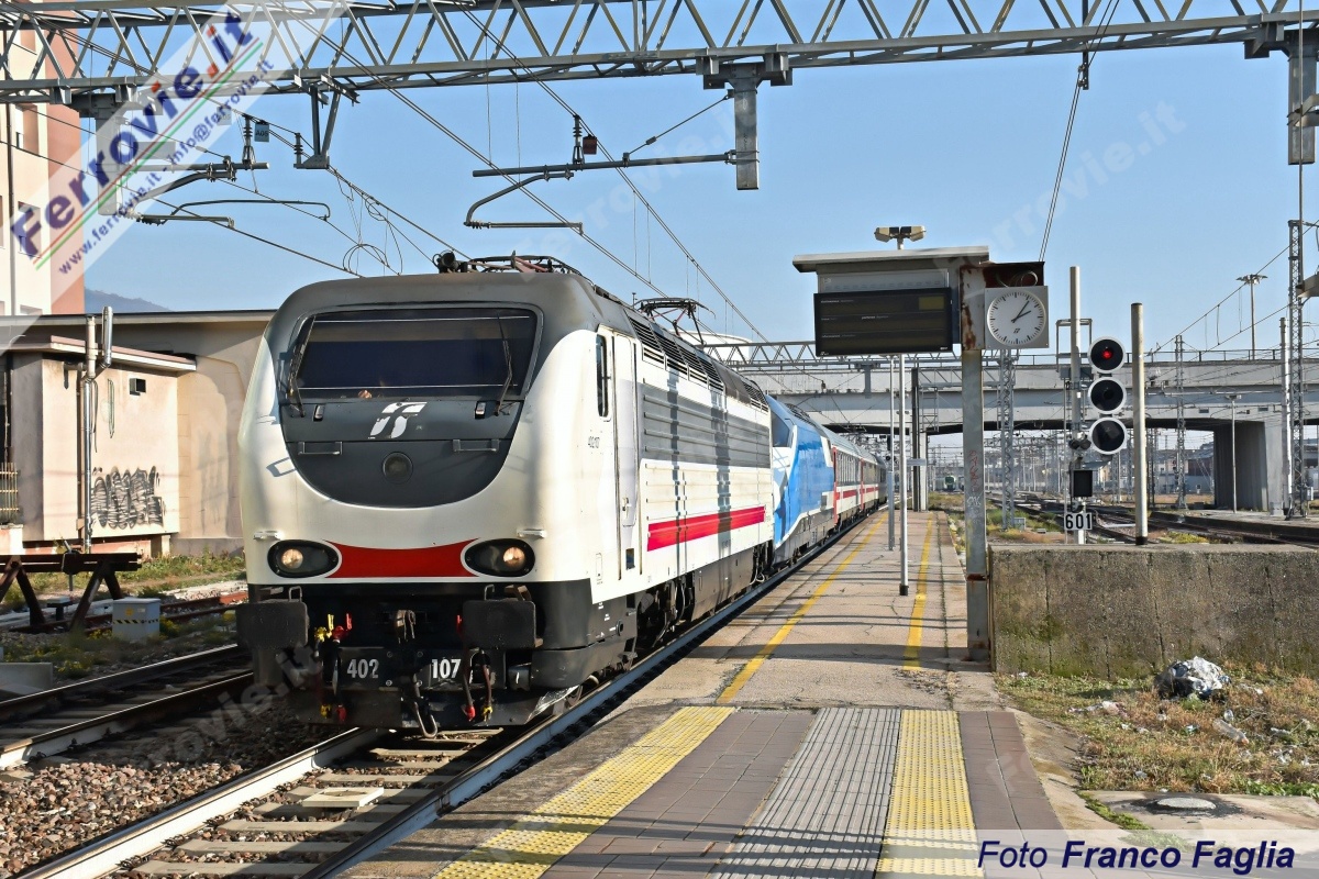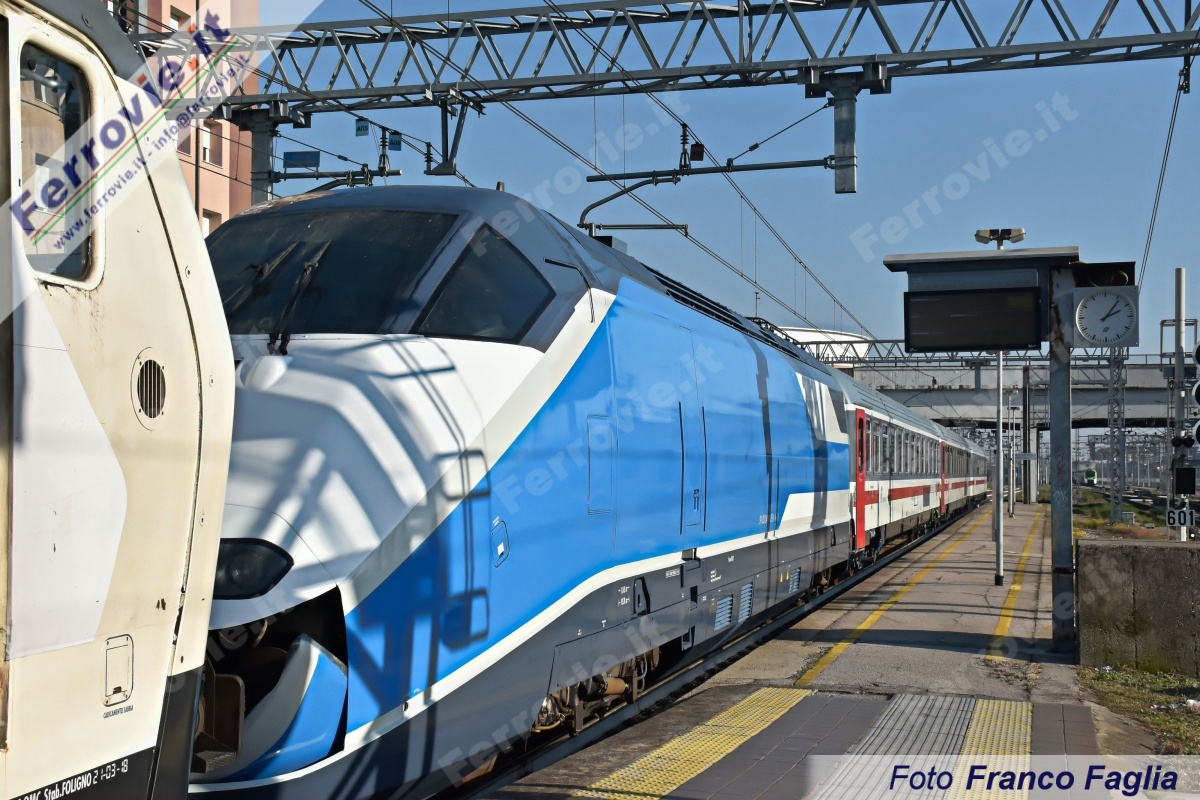 VERONA - Nella mattinata di giovedì 11 gennaio è uscita dalle Officine Trenitalia di Verona Porta Vescovo la E.414.125. L'unità si presenta con un nuovo schema di coloritura della Divisone Business Intercity caratterizzato da un motivo celeste sulla fiancata, ma ancora priva dei loghi FS, Trenitalia e Intercity. Non è noto se si tratti di un ulteriore esperimento o della prima applicazione definitiva di questa cromia sul gruppo E.414 a cui seguiranno altre locomotive e carrozze di Trenitalia.