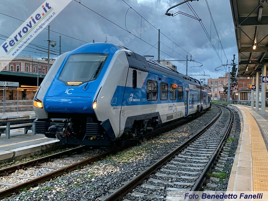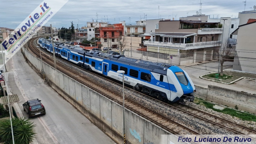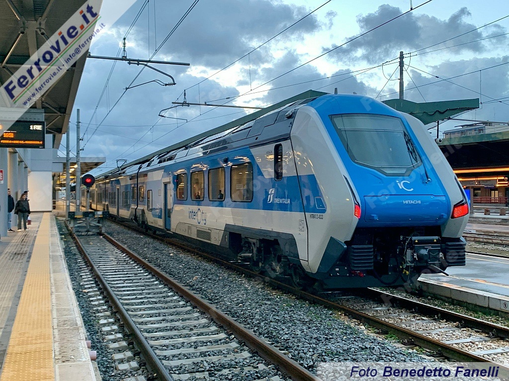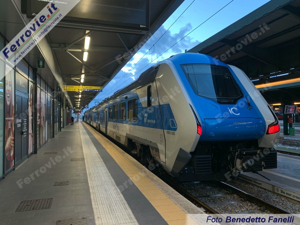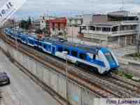 LECCE - Sono iniziate nella mattinata del 23 gennaio le prime corse prova in territorio pugliese del nuovo "Blues" HTR.412 S1-033, convoglio ibrido ad alimentazione 3 kV cc + Diesel/batterie, che verrà impiegato sugli Intercity "ionici" tra Puglia e Calabria.